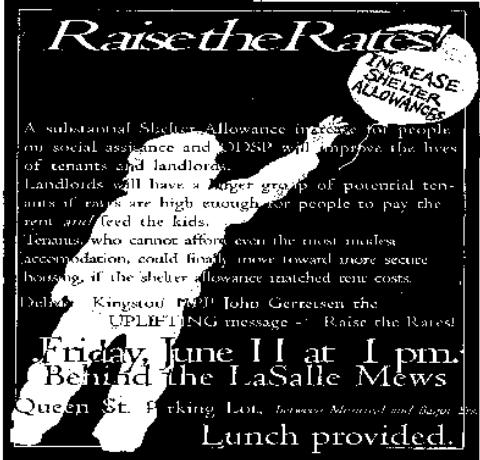 Common ground between ROOO members and landlords was discovered in several areas, such as support for an increase in shelter allowances, a direct rent payment option to landlords (at the voluntary choice of tenants), and the need for a renter-landlord matching service, including community service agency supports to both tenants and landlords experiencing tension or conflict in a tenancy.