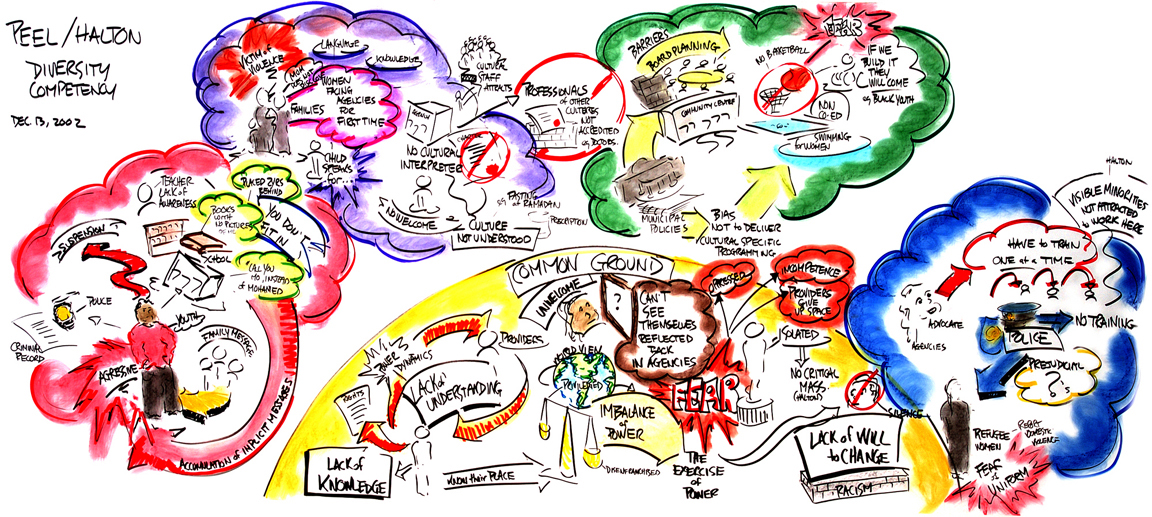 (In December 2002, a group of ten women who emerged as champions on diversity issues met with staff from Halton and Peel social planning councils. They discussed the growing diversity of their regions and the gaps of service and experience of exclusion for immigrants and people of color. The following summarizes their discussion.)